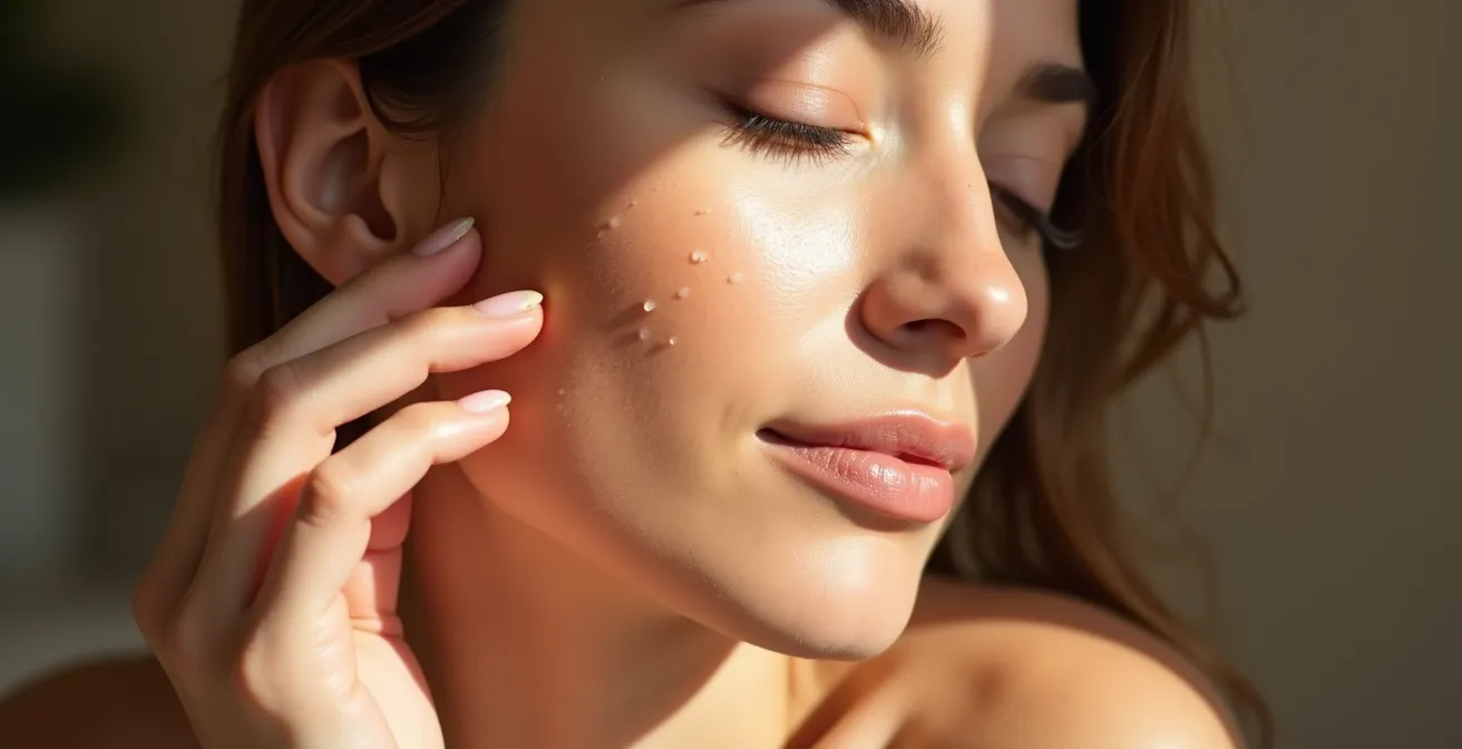 La gestuelle doit s’adapter à la texture de votre sérum. Pour un sérum aqueux et fluide, les tapotements légers, ou « pianotements », sont idéaux. Ce geste réveille la peau, active la circulation sanguine et favorise une pénétration rapide sans déplacer le produit. Pour un sérum plus riche ou une texture huile, le lissage ascendant est plus approprié. Des mouvements lents, de l’intérieur vers l’extérieur et du bas vers le haut, permettent non seulement de faire pénétrer le produit mais aussi d’effectuer un drainage lymphatique doux pour décongestionner les traits.